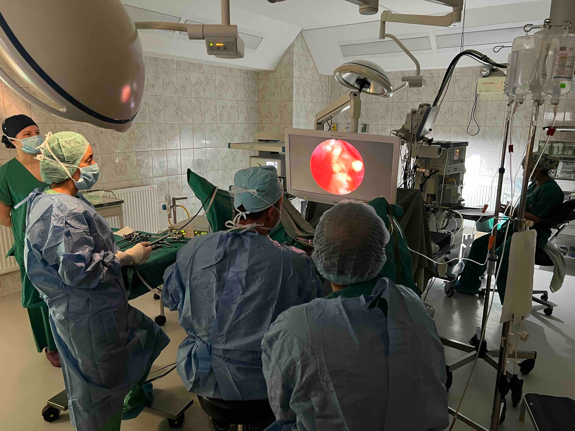 Vor einigen Tagen durfte ich zum ersten Mal ein neues Gerät zur Steinzertrümmerung einsetzen. Statt großen Schnitten können wir jetzt selbst in der Niere Steine mit minimal-invasiver Technik zertrümmern und absaugen. Das Bild unten zeigt eine Steinzertrümmerung in der Blase.
