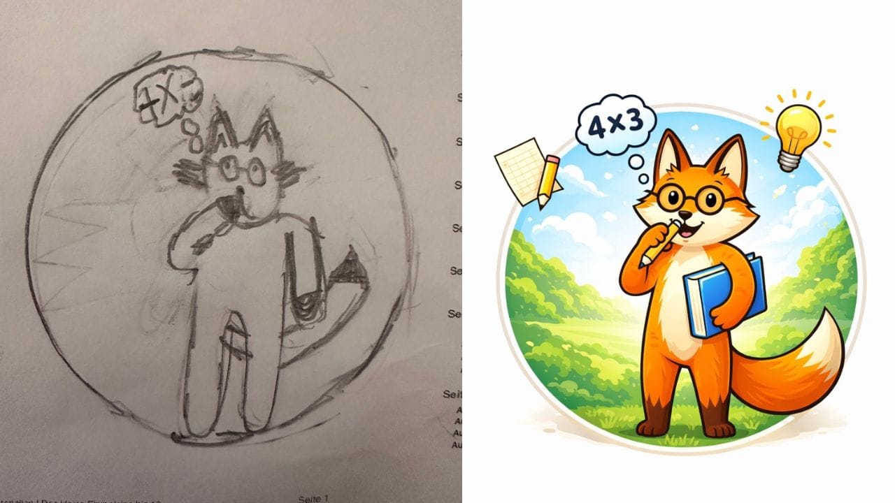 Arbeitsblätter aus dem Internet? Wir hatten eine gute Seite gefunden. Das Problem: Fünf Blätter pro Tag, kostenlos. Das reichte für eine halbe Stunde. Also habe ich eine KI um Hilfe gebeten. Daraus wurde „Schlaufuchs“, unser eigenes Lernprogramm. Ich bin gerade dabei, eine passende App zu programmieren. Mit eigenem Logo, gezeichnet von unserer Tochter Mila.